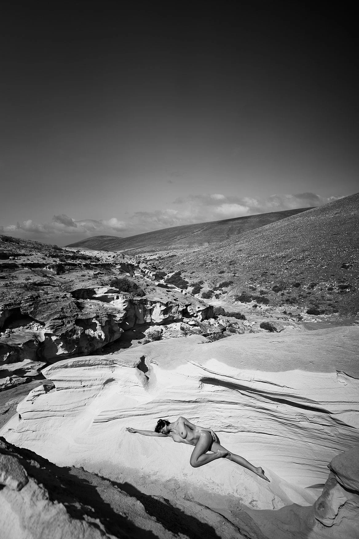 Seven months later and my plane landed in Fuerteventura. I had flown out a day earlier partly to make use of the weekend but also to enjoy the island alone. As promised it was warmer than the UK but windy and very overcast. The plane-load of British tourists were not as happy as I was at the sight of those clouds. The next day Alessio picked up Irina from the airport and we enjoyed a casual meal in the apartment I had rented. The idea being to get to know each other and chat about the week ahead and importantly what time he should collect us the next morning - early was the answer. But not before I could give Irina a few prints she had requested from our last shoot together. I love to reunite the muse with the images we create together.