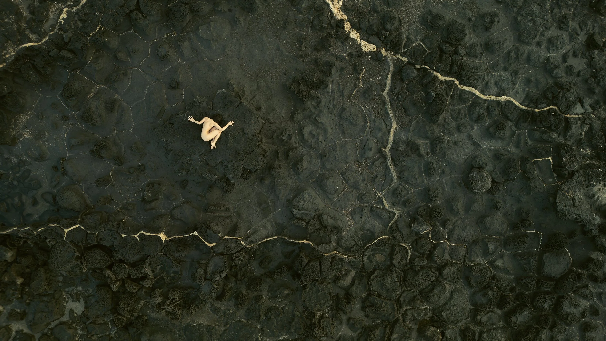 The morning had been productive but it wasn’t 9 am yet and we couldn’t check in to our new place until 2pm. We decided to drive south to our next accommodation in a small town of Pájara and do some location planning. I had picked this place as it was close to two black sand beaches (my love of black sand knows no bounds). Our first stop just took my breath away, this was quickly my new favourite beach. Deep black sand framed by tall cliffs and littered with giant boulders. The weather was on our side and it was still too early for lunch so we decided to use the time to shoot. The first image I have from this beach is of Irina lying face down and nude making angel wings as she tried to coat her skin in black sand. Always devoted to the cause that one.